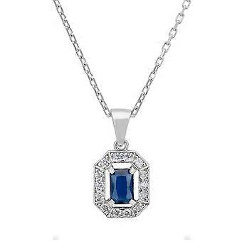 Whistledown Sapphire Gemstone Pendant Necklace for Women - Sterling Silver - Adjustable 40-45cm Chain