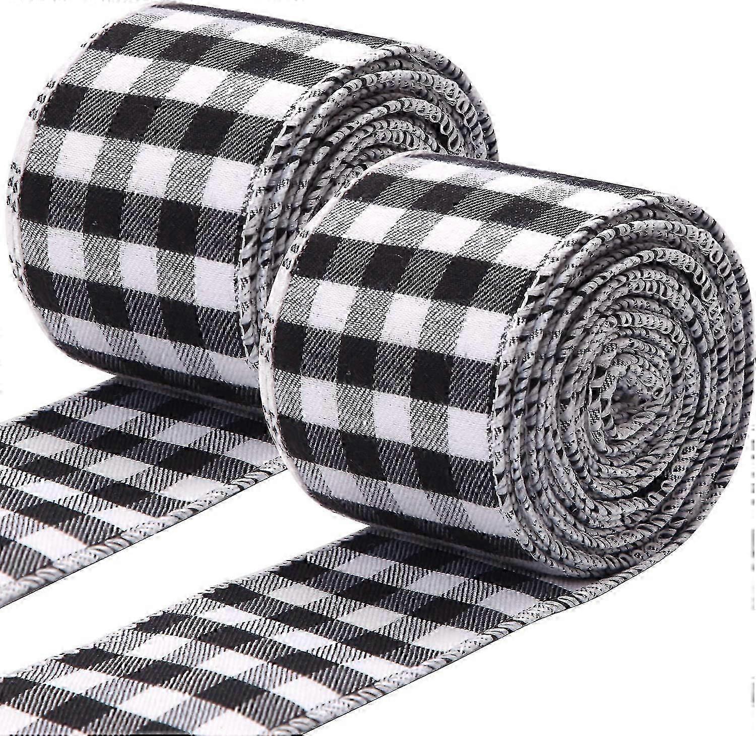 White And Black Plaid Burlap Ribbon Christmas Wired Ribbon (5cm X 6m)wrapping Ribbon For Christmas Crafts Decoration, Floral Bows Craft