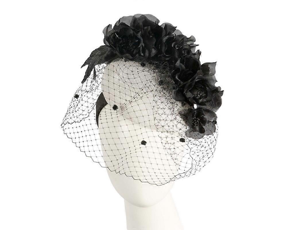 White & Black flower pillbox with face veil by Fillies Collection S314WB