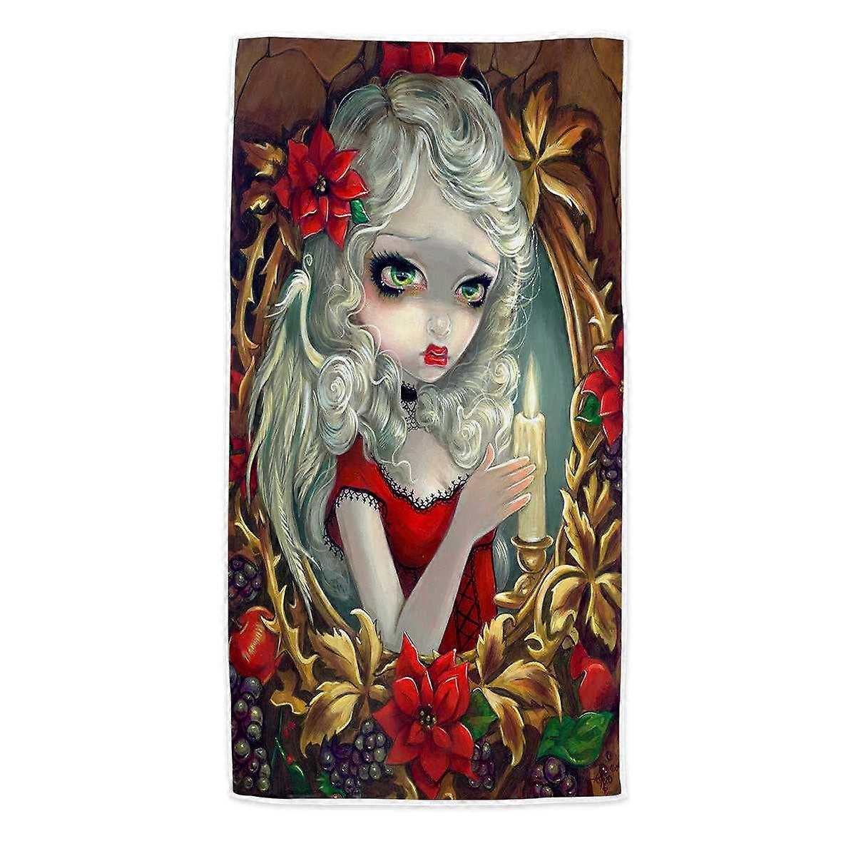 White Haired Beautiful Girl Christmas Candle Microfiber Beach Towel