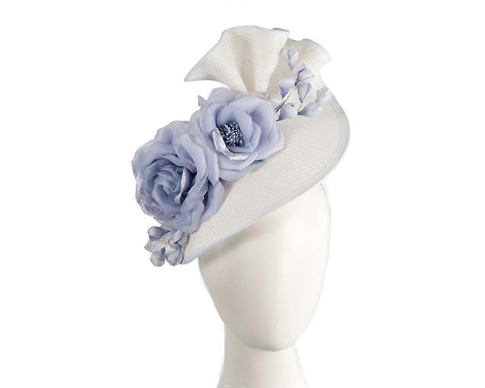 White & light blue racing fascinator by Fillies Collection S315WBL