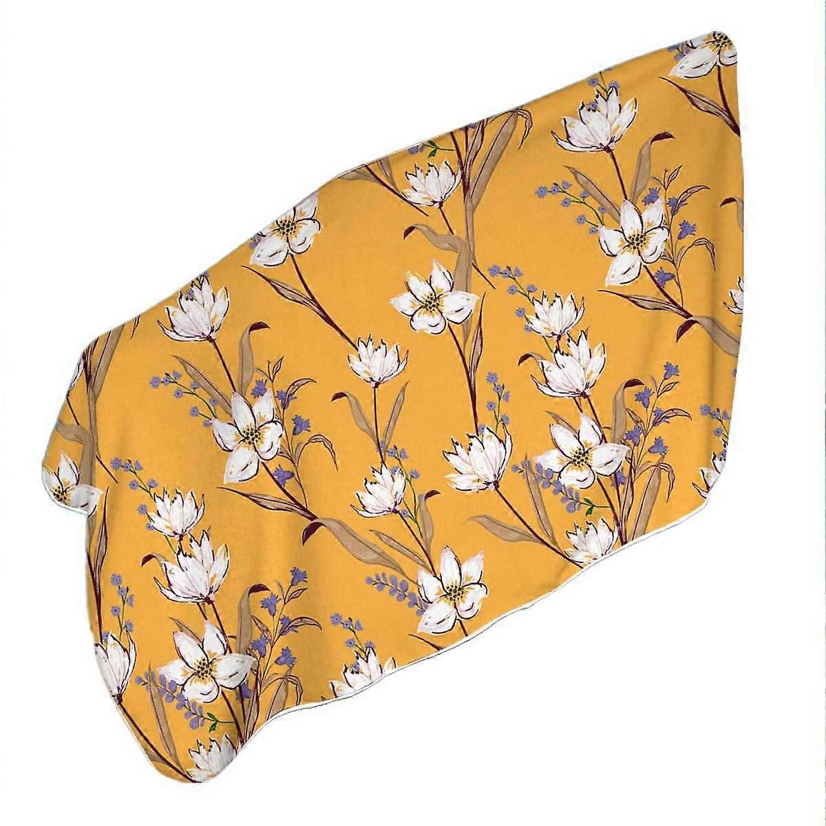 White Purple Flowers over Yellow Microfiber Beach Towel
