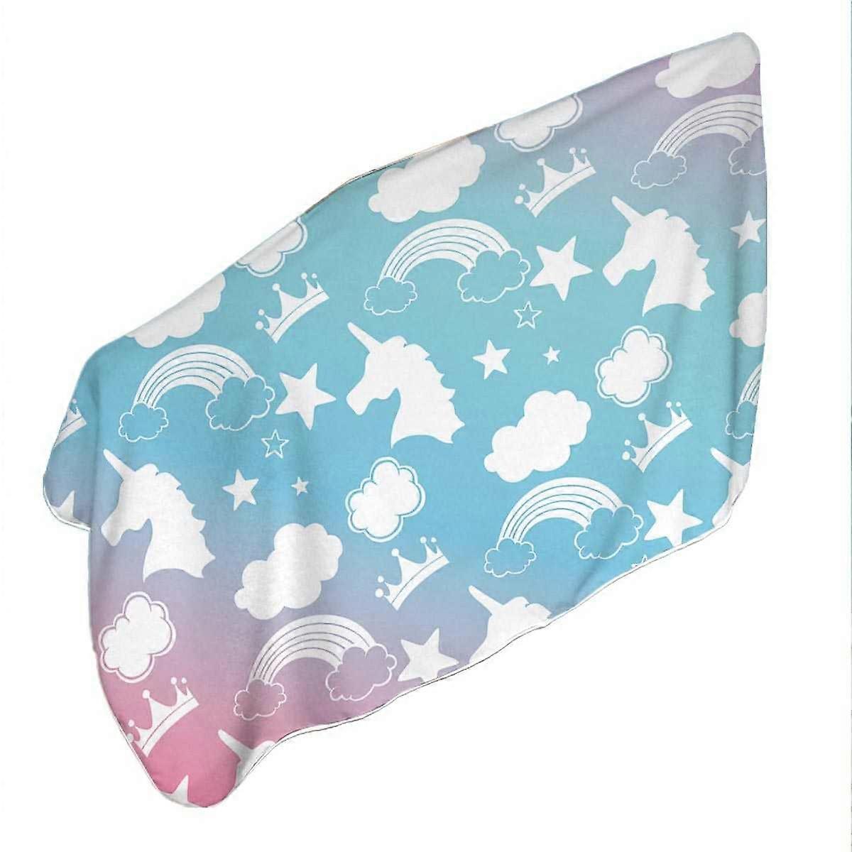 White Silhouettes Clouds and Unicorns Microfiber Beach Towel