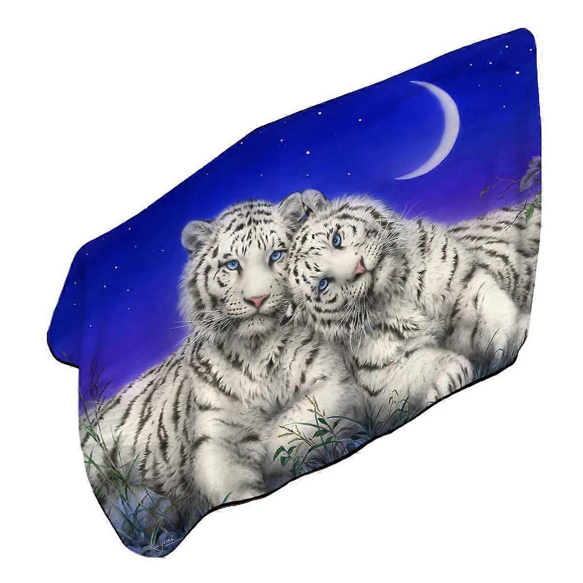 White Tigers Moon Lovers at Night Microfiber Beach Towel
