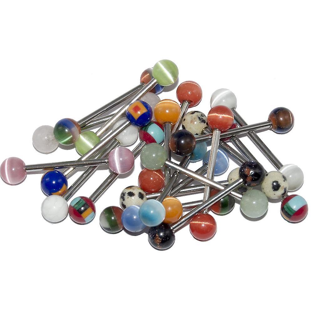 Wholesale lot of 20 straight barbells 14g mixed surgical steel glass end beads