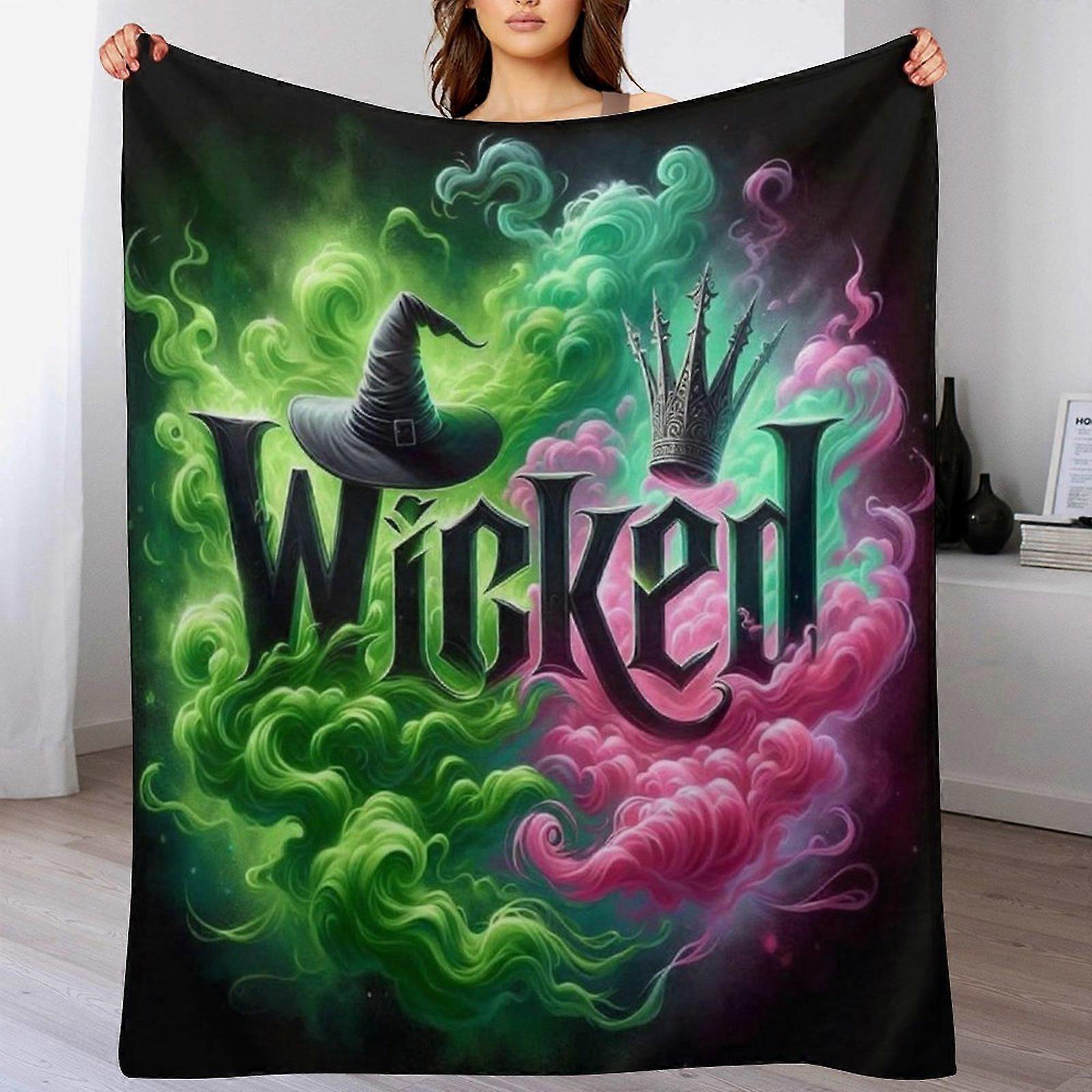 Wicked Gothic Letter Graphic with Witch Hat & Crown Smoke Print Fleece Blanket, Soft Warm Cozy Throw for Sofa Bed Bedroom Living Room Home Decor, Unis
