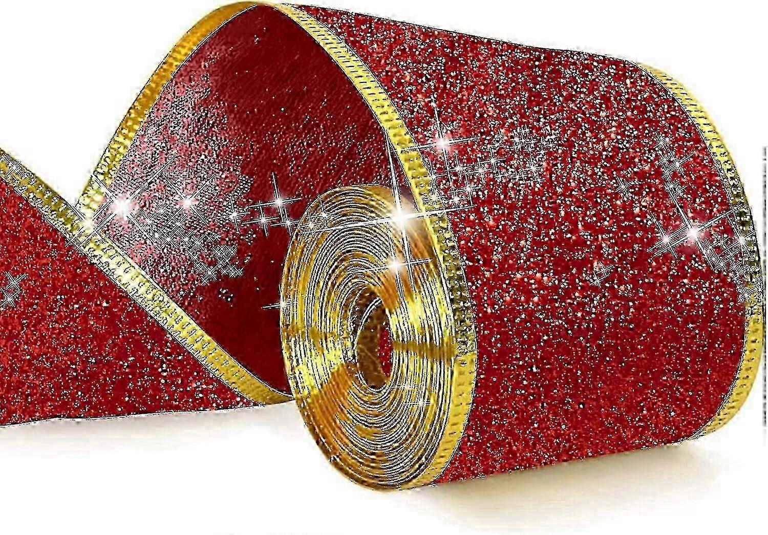 Wide Wire Edge Glitter Ribbon For Christmas Crafts 10m Roll Red Ribbon With Gold Edge