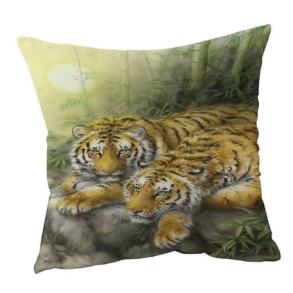 Wild Animals Art Tigers Forest Morning Cushion Cover