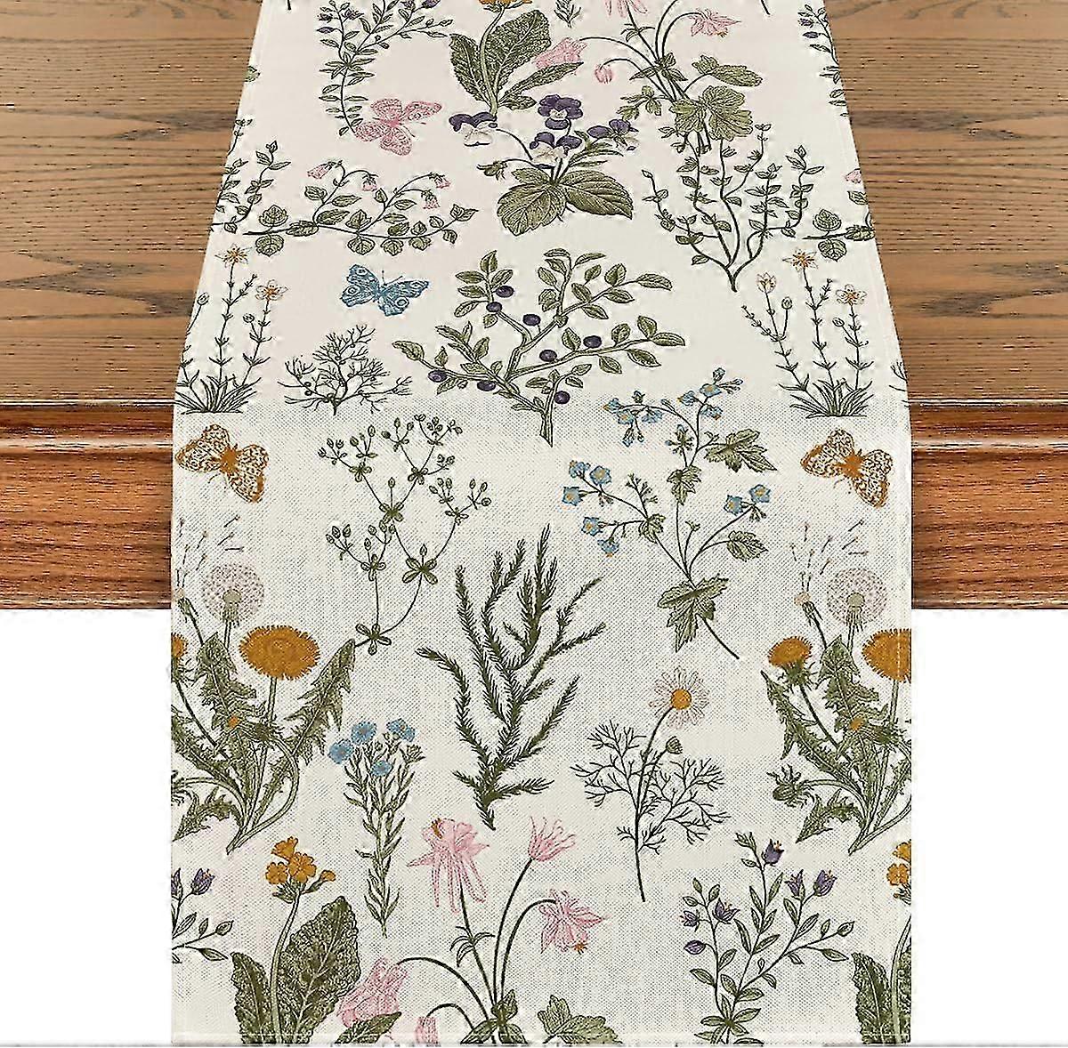 Wildflowers Floral Spring Table Runner, Seasonal Summer Butterfly Kitchen Dining Table Decoration for Home Party 13x72 Inch