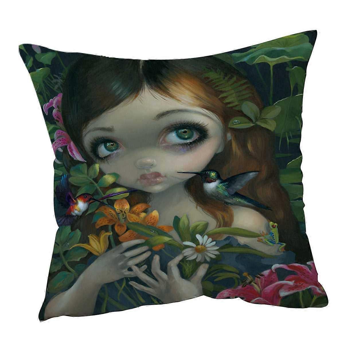 Wildwood Bouquet Flowers Art Girl with Hummingbirds Cushion Cover