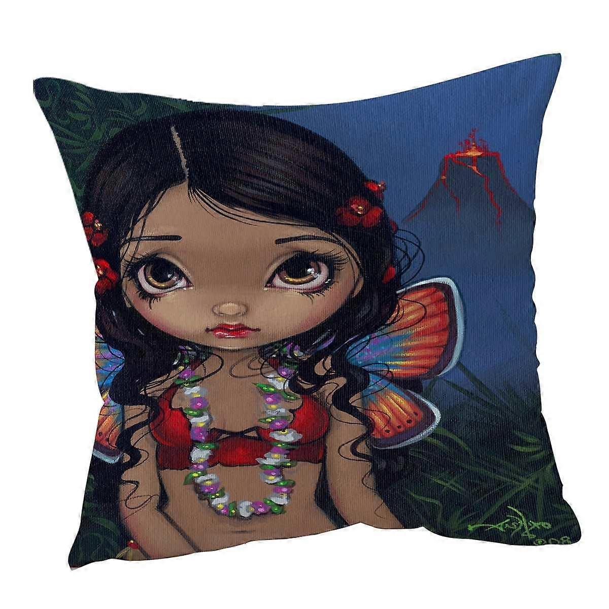 Winged Tiki Hula Girl Hawaiian Volcano Fairy Cushion Cover