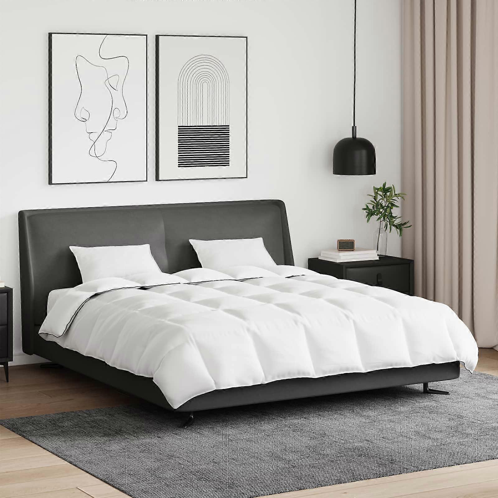 Dieses moderne Bettwäsche-Set steigert den Schlafkomfort mit seinem eleganten, minimalistischen Design und der hochwertigen Verarbeitung. Es passt in jedes Schlafzimmer und sorgt mit seiner glatten Textur für ein einladendes Ambiente, ideal zum Entspannen in der kalten Jahreszeit. Premium-Materialien: Dieses Set bringt die besten Eigenschaften von Mikrofaser und Baumwolle zusammen – für ein luxuriöses, angenehmes Gefühl. Die atmungsaktiven Baumwollfasern sorgen für Komfort, während die Mikrofaser zusätzliche Weichheit bietet, die dich warm umhüllt, ohne schwer zu sein. Enthält Essentials: Im Set sind 1 Decke und 2 Kissen enthalten. Die Decke hat ein schickes Kastensteppdesign, das die Daunenfüllung an Ort und Stelle hält und kalte Stellen vermeidet. Die Kissen sind aus Baumwolle und mit Daunen gefüllt, damit du bequem schlafen kannst. Vereinfachte Merkmale: Der minimalistische Stil mit klaren Linien und feinen Details sorgt für einen modernen Look, der jede Schlafzimmerdekoration ergänzt, ohne überladen zu wirken. Ideal für alle, die Eleganz schätzen. Vielseitige Verwendung: Hauptsächlich für das Schlafzimmer gedacht, bietet dieses Set an kalten Winternächten Gemütlichkeit. Es passt wunderbar in moderne Räume, ist aber auch vielseitig genug für verschiedene Einrichtungsstile und spricht alle an, die Stil und praktische Funktionen schätzen. Einfache Pflege: Die Pflege des Bettwäsche-Sets ist dank des maschinenwaschbaren Designs kinderleicht. Waschbar bis 40°C bleibt es frisch mit minimalem Aufwand, erhält seine Qualität und verlängert die Lebensdauer, was Zeit und Mühe spart.
