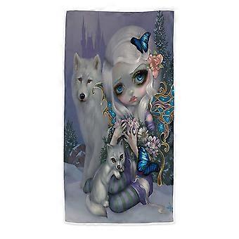 Winter Fairy with Two White Wolves and Butterflies Microfiber Beach Towel