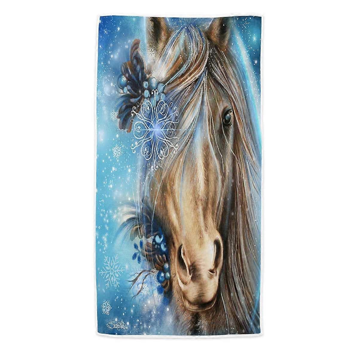 Winter Snowflake Pretty Blue Horse Microfiber Beach Towel