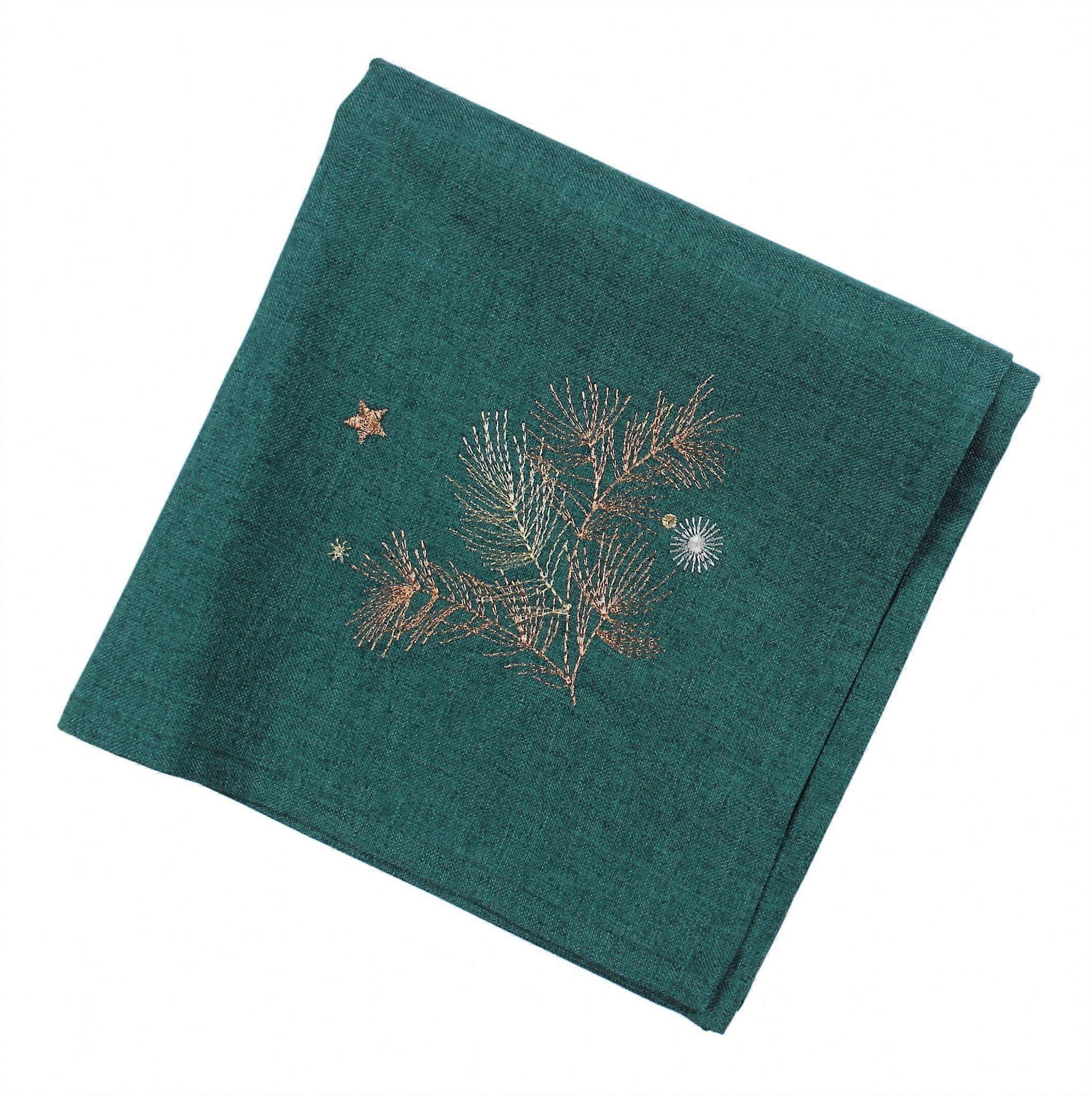 Winter Sprigs Embroidered Christmas Napkin - Green/Multi - 45cm x 45cm