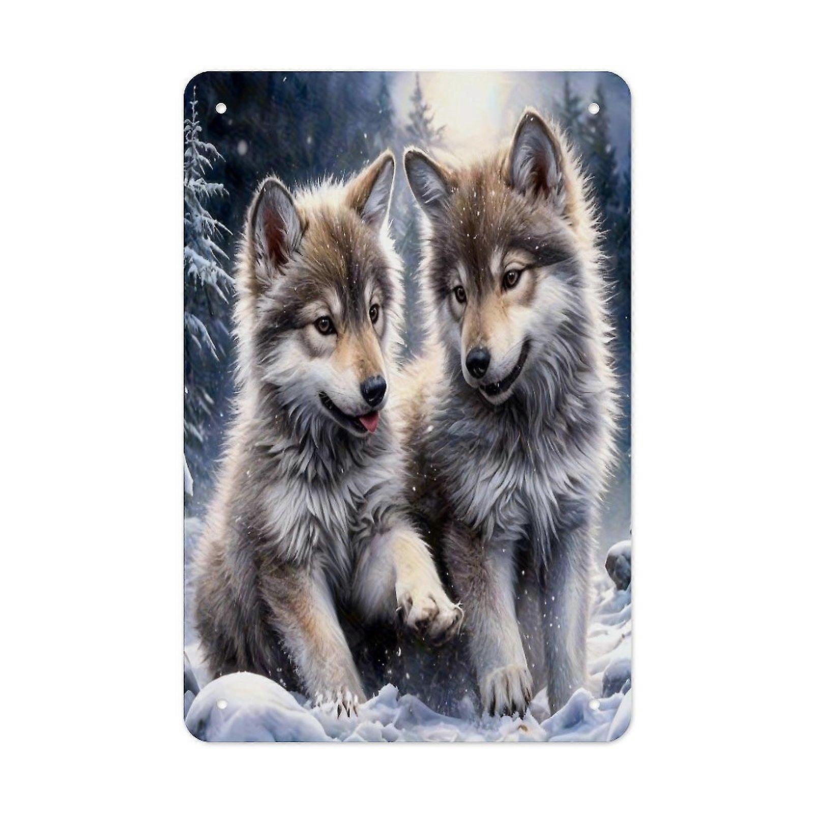 Winter Wolf Pair Metal Tin Sign Wildlife Wall Decor Rustic Nature Home Decoration Gift