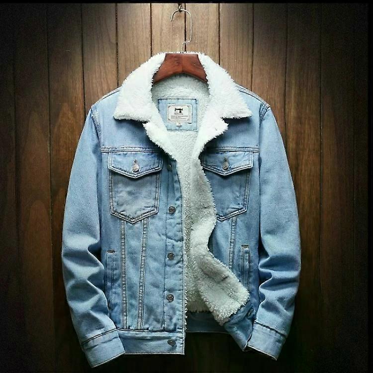 Winter Wool Liner Jean Jacket-Warm Denim Coat for Men,Sky Blue,Size: XXXX-L,XXXX-L Sky Blue,XXXXL