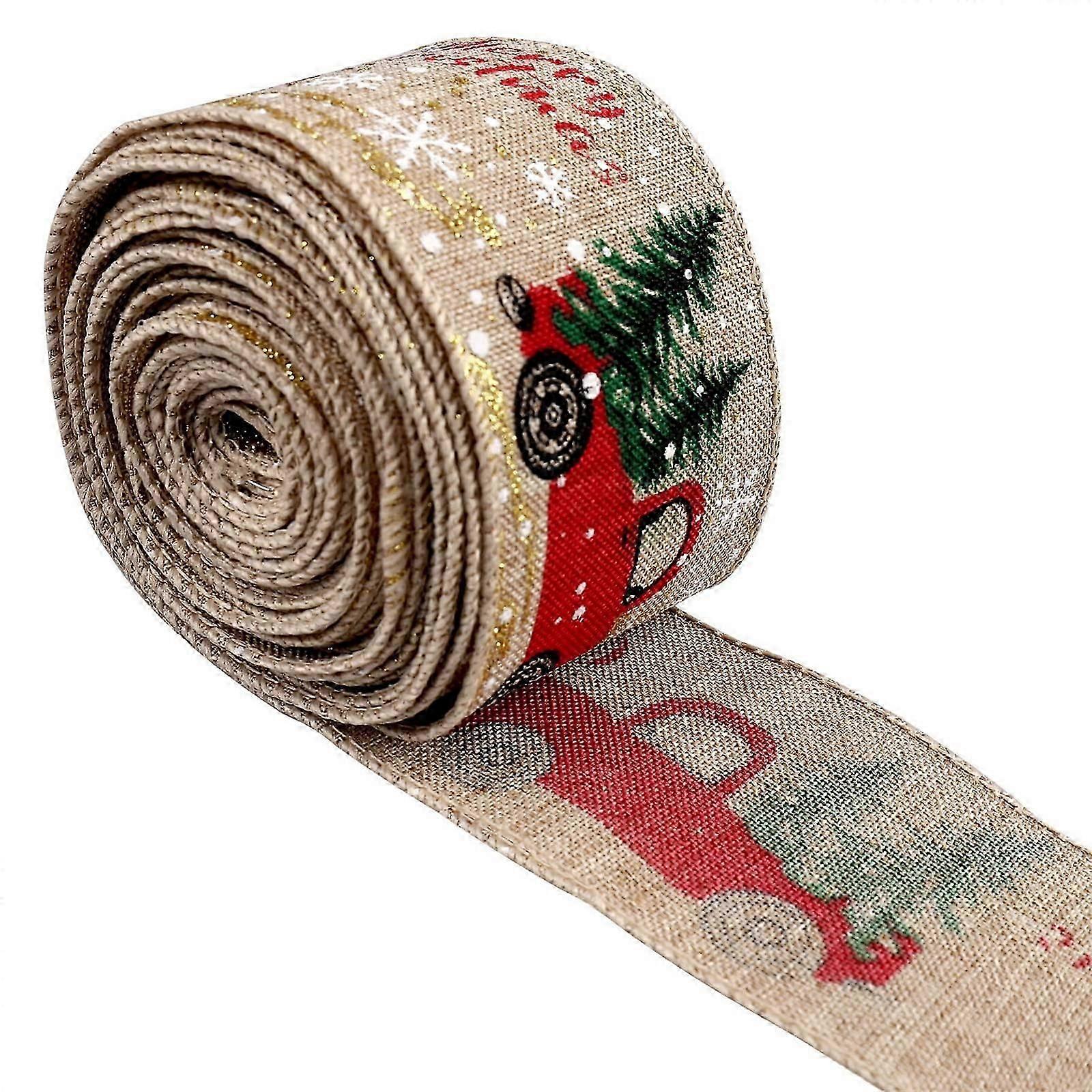 Wired Christmas Ribbon Roll, 2 Inch x 5.5 Yards, Vintage Red Truck Shape Ribbon, Christmas Tree Bows, Gift Wrapping Ribbon, Floral Bows, DIY Crafts