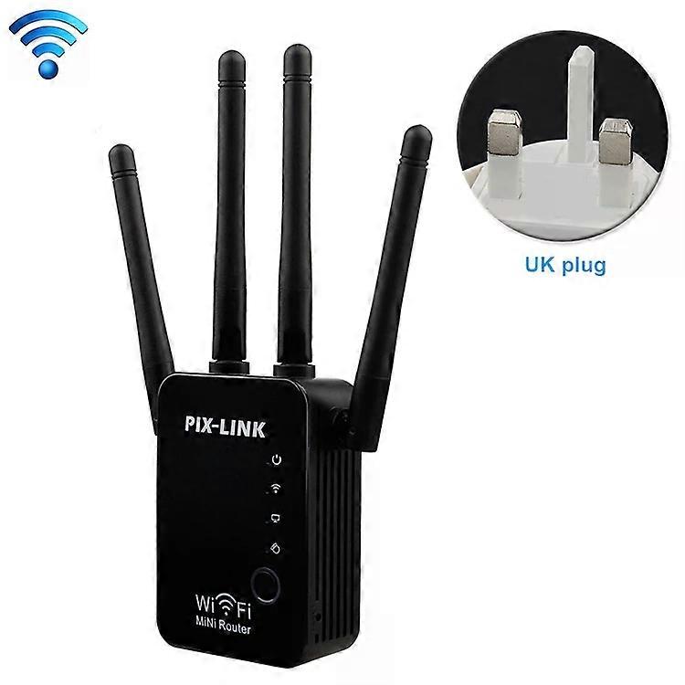 Wireless WiFi Router Repeater-4 Antennas,UK Plug,Black-Black