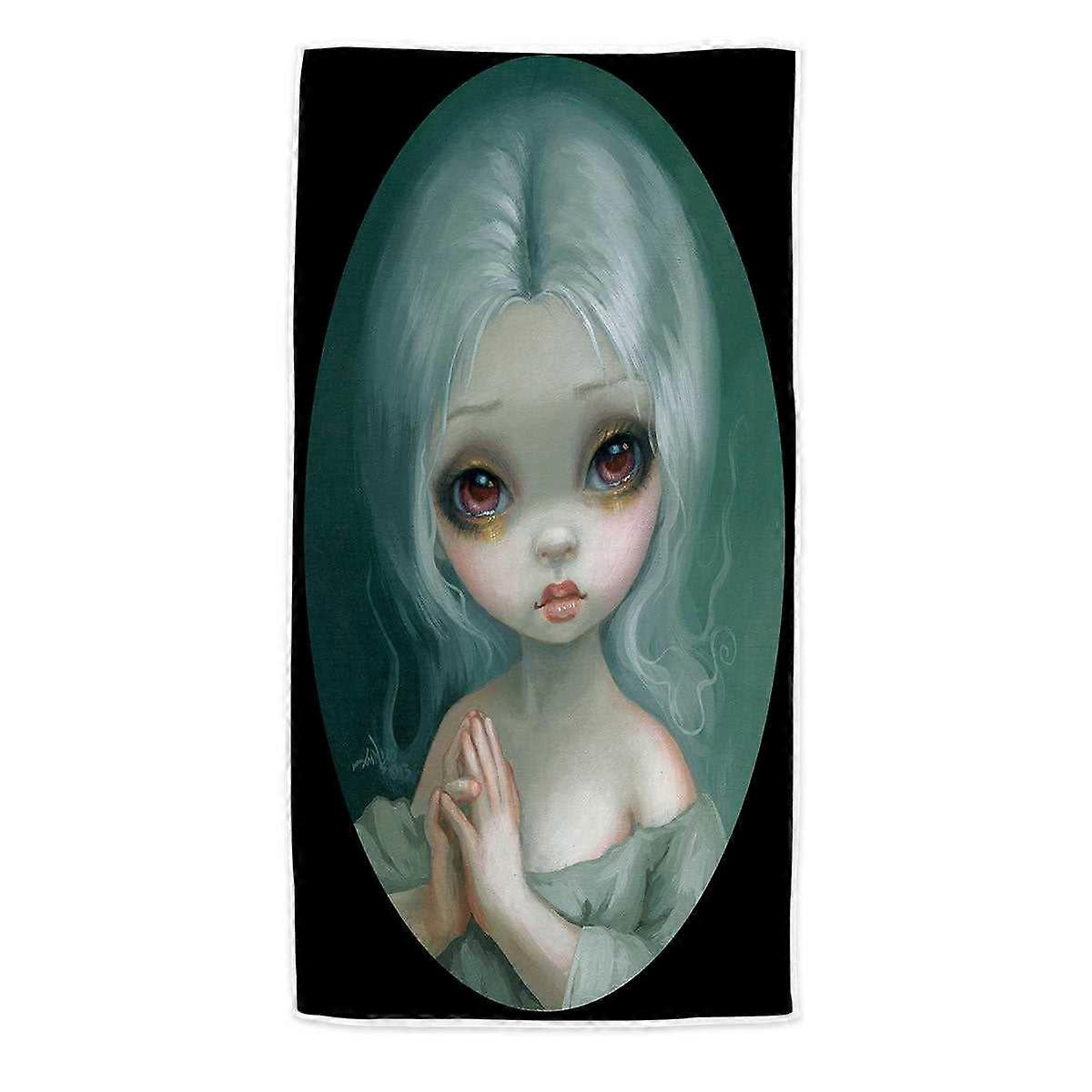 Wishful Thinking Sweet Big Eyed Girl Painting Microfiber Beach Towel