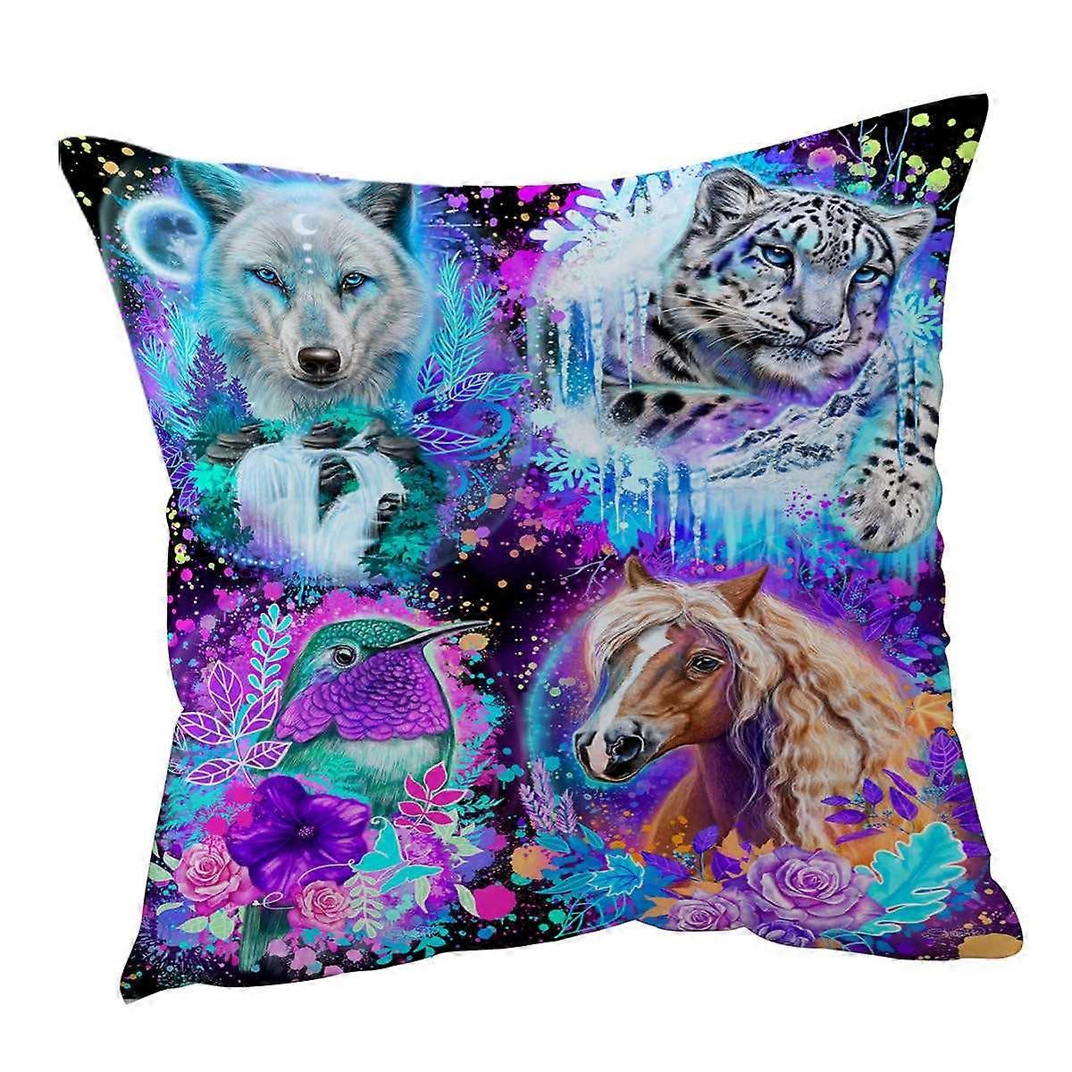 Wolf Horse Leopard Hummingbird Animal Collage Cushion Cover