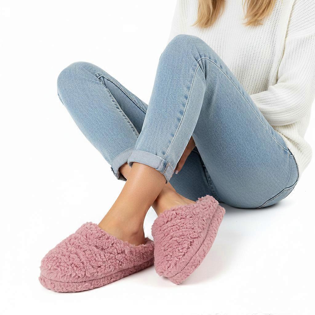 Women Slippers Winter Warm Teddy Fleece Upper Shoft Lining Non-Slip Mule Slipper