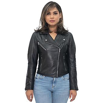 Womens Black Classic Nappa Leather Retro Biker Jacket