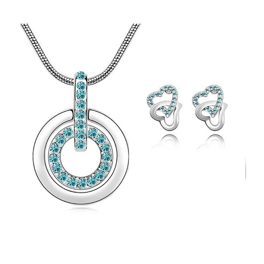 Womens Blue Circle Pendant Necklace With Matching Love Heart Earrings Set