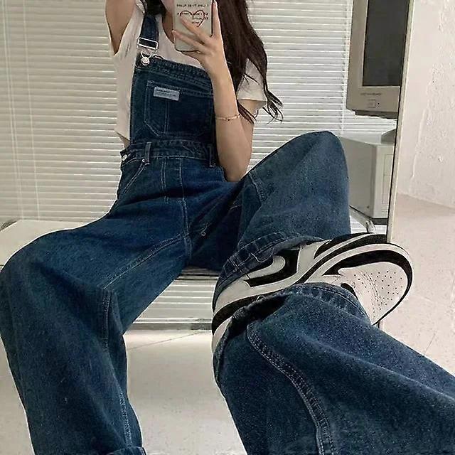 Women's Blue High Waist Wide Leg Denim Jumpsuit Pants Vintage Streetwear Y2k
