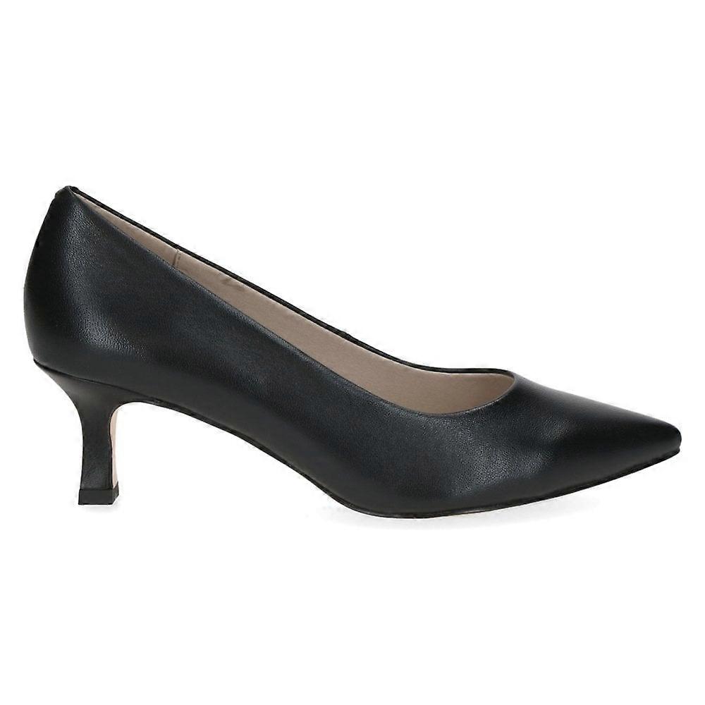 Women's Caprice 22401 46 022 | Black Leather | Womens Mid Heel Pointed Toe Court Shoes