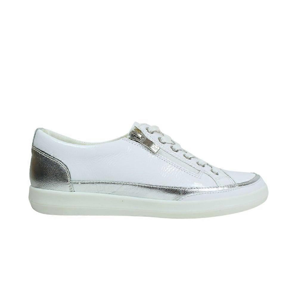 Women's Caprice 23706 44 183 | White Patent Leather | Ladies Zip/Lace Smart Casual Trainers