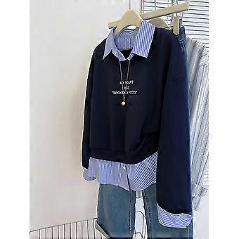 Women's Casual Striped Patchwork Slogan Embroidery Sweatshirt, Autumn