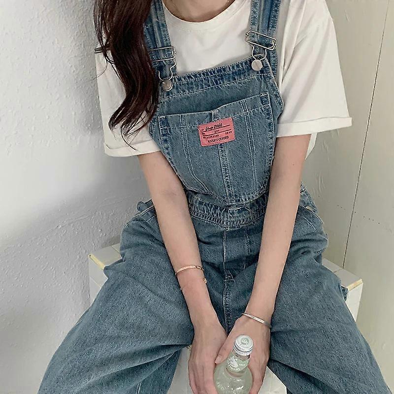 Women's Casual Wide Leg Denim Jumpsuit - Autumn Loose Jean Overalls Korean