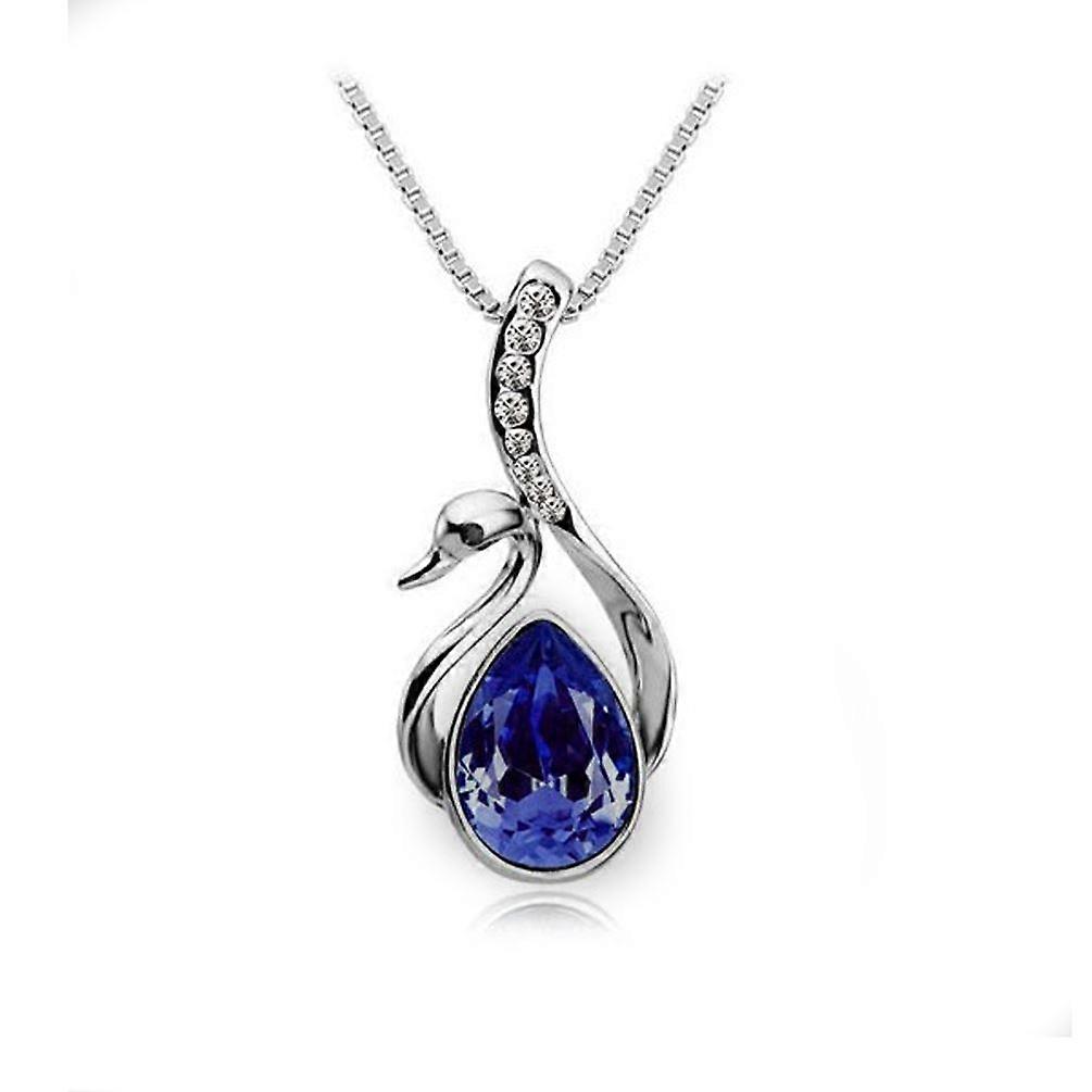 Womens Crystal Dark Blue Stone Swan Necklace Pendant Silver Plated BG1670