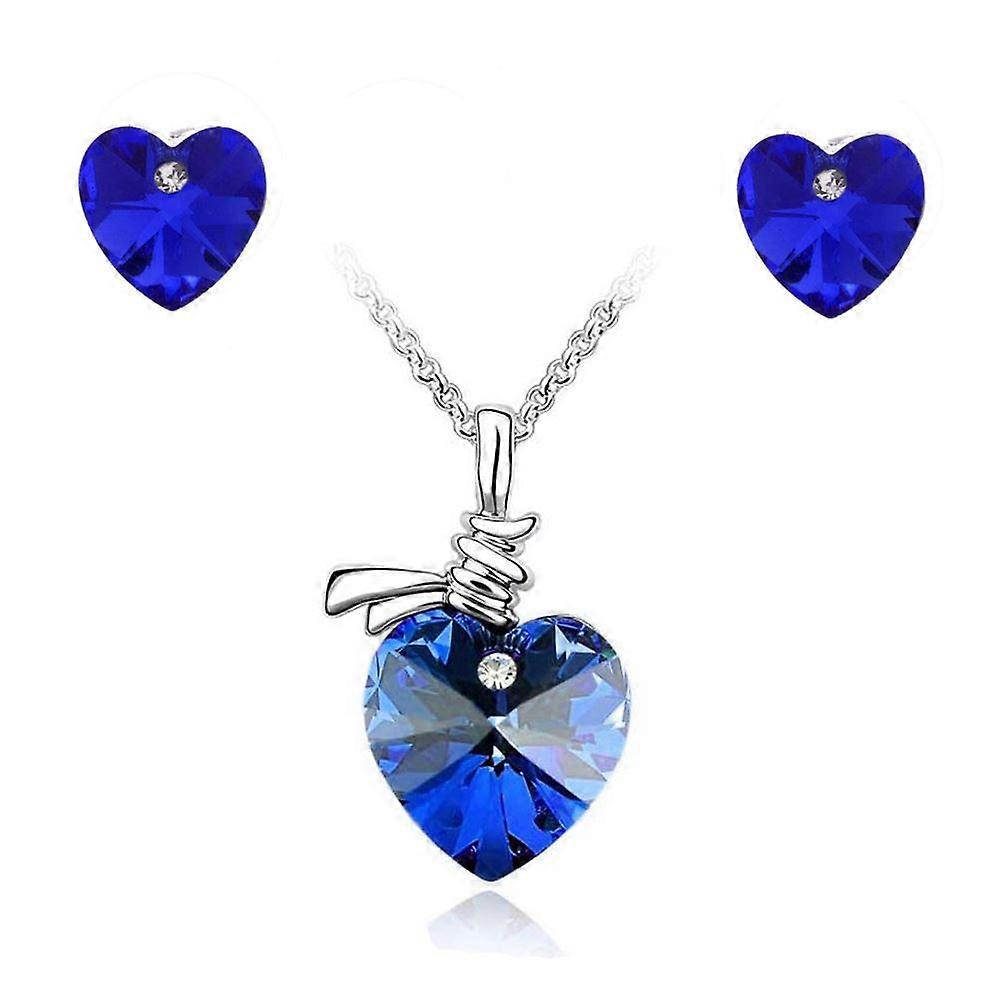 Womens Crystal Stone Love Heart Pendant Necklace And Earrings Gift Set