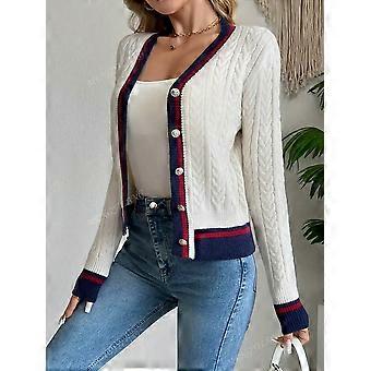 Women's Elegant Casual Knitted Cardigan, Button Contrast Color Design, Contrast Trim Cable Knit, Outerwear, Back To School & Streetwear