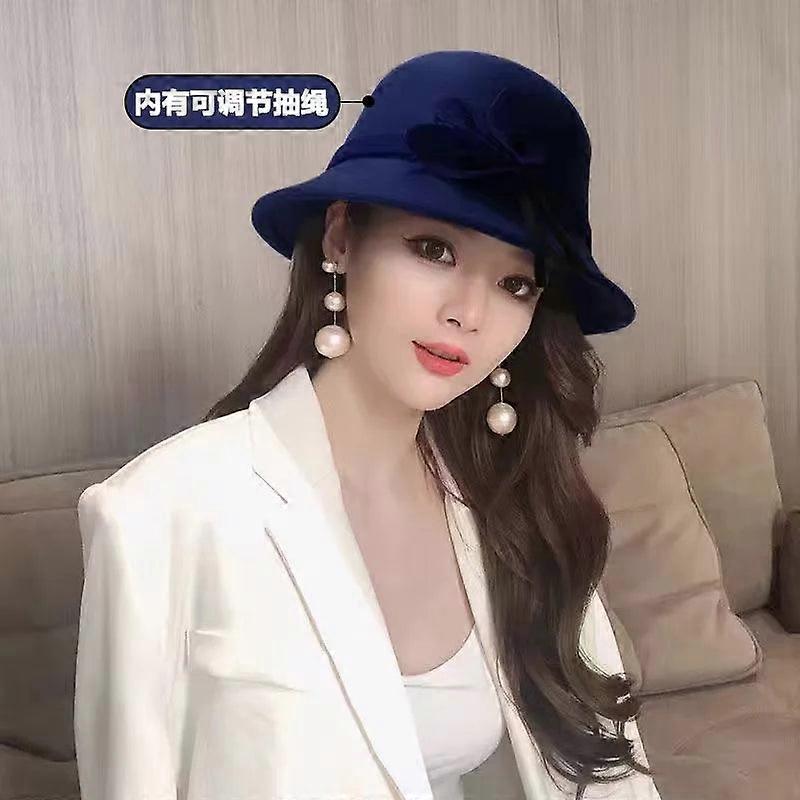 Women's Elegant Vintage Bowknot Fedora Hat Wool Felt Dome Cap For Autumn Winter