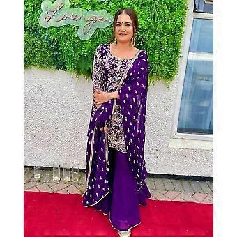 Women's Faux Georgette Embroidered Top with Plazo & Dupatta