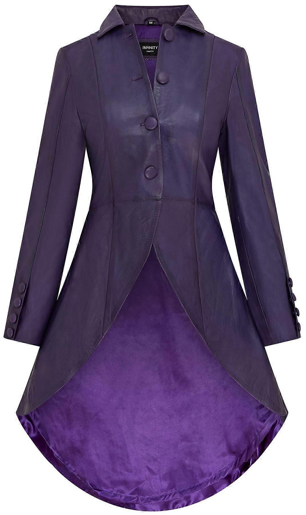 Womens Gothic Purple Full Length Leather Coat Victorian Flare Goth Punk