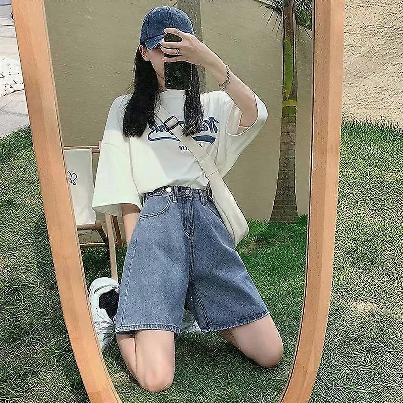 Women's High Waist Belted Denim Shorts - Summer Streetwear Loose Fit Jeans