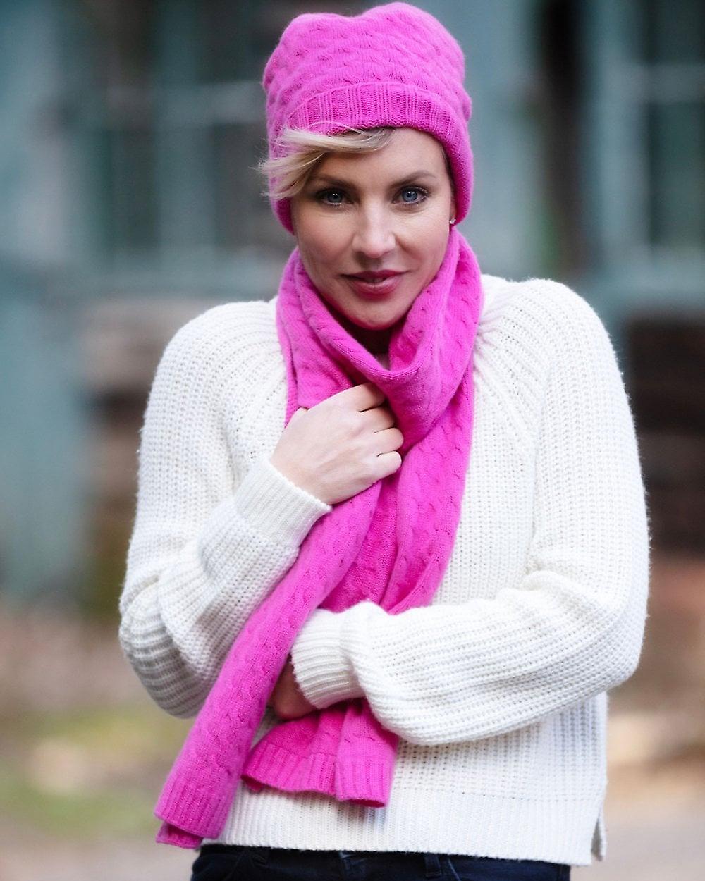 Women's House of Cheviot Cashmere Scarves Ladies Cashmere Cable Scarf ~ Hot Pink