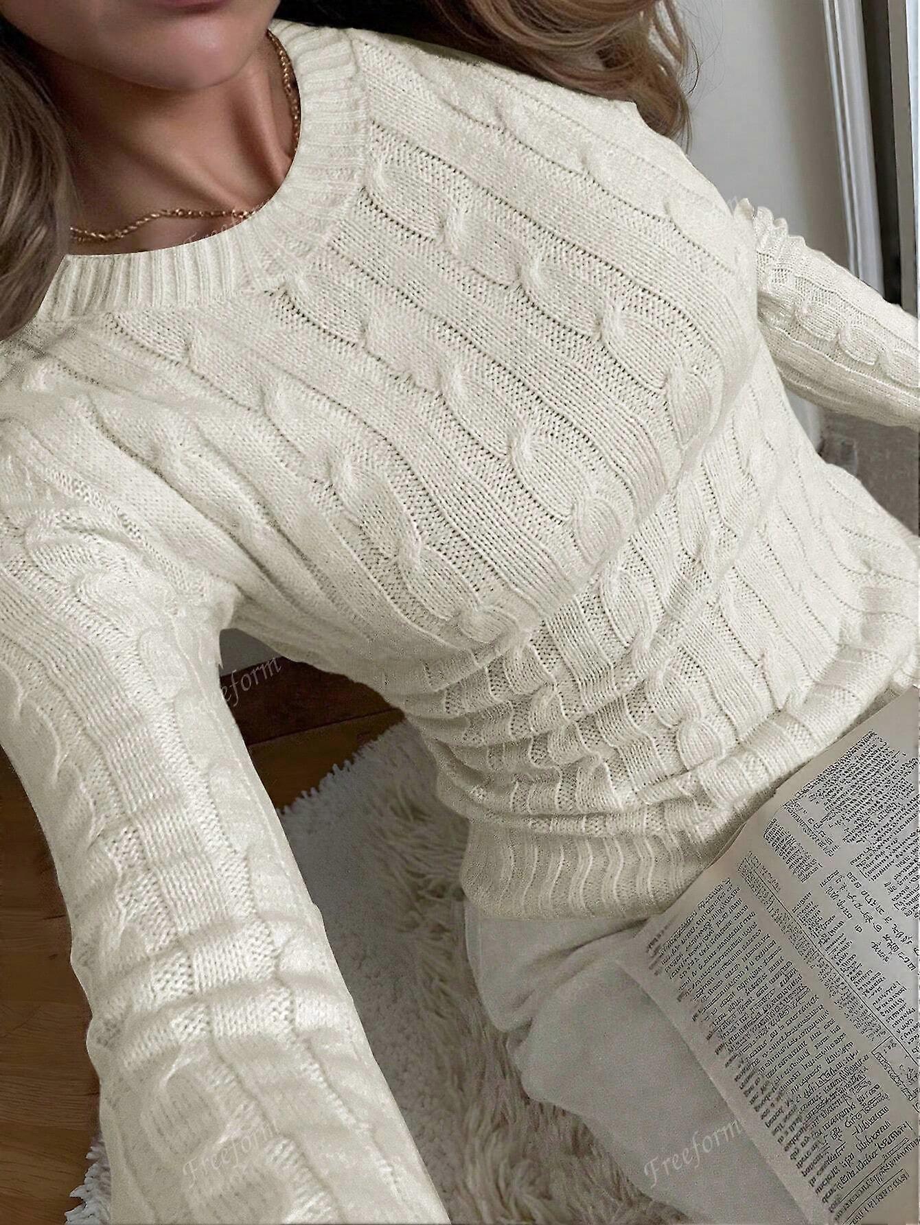 Women's Knitted Long Sleeve T-Shirt, Freeform Style, Fashionable & Minimalist, Suitable For Business, Casual, Commute, Elegant Vacation Wear, Warm, Hi