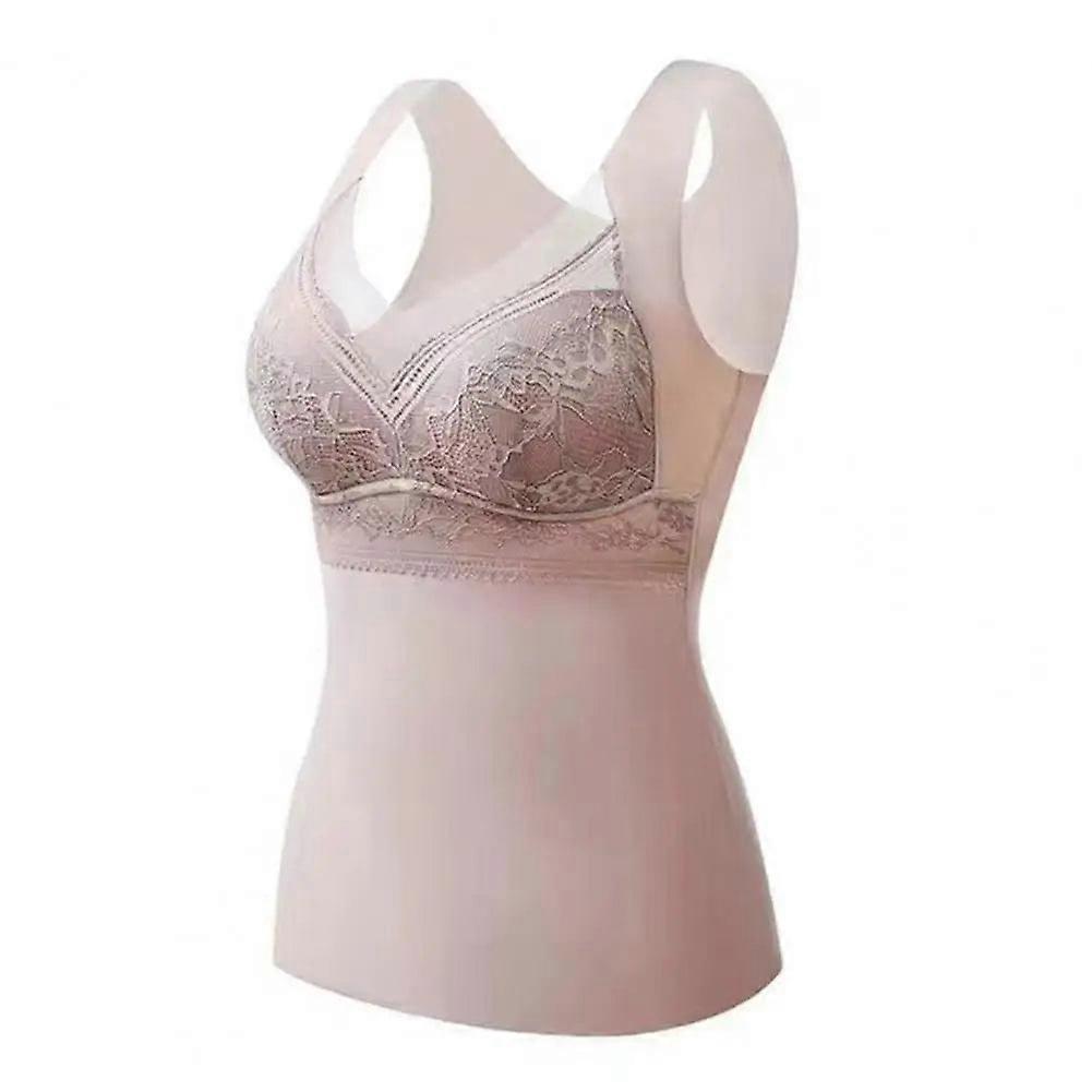 Women's Lace V-neck Camisole, Warm Sleeveless Vest With Chest Pad, Slim