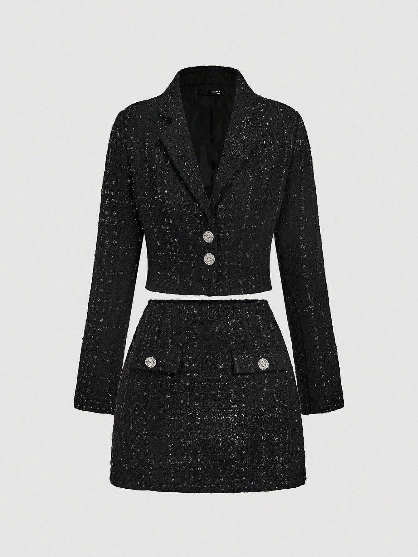 Women's Lapel NeckLong Sleeve Single-Breasted Jacket And Midi Skirt Elegant Suit Set
