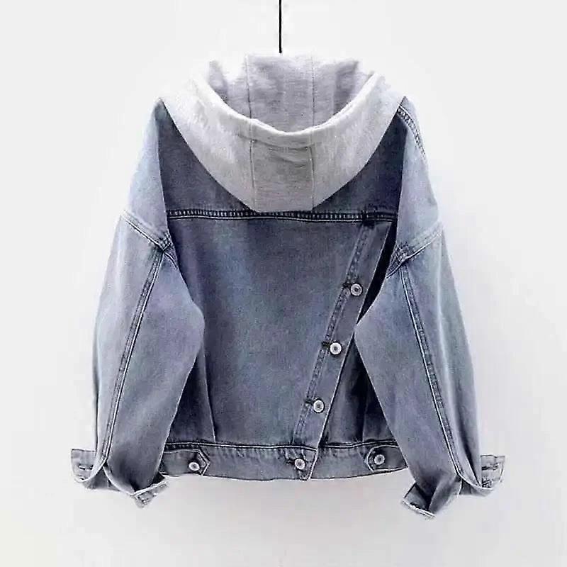 Women's Long Sleeve Denim Hooded Coat Jacket - Fashion Single-breasted With Big