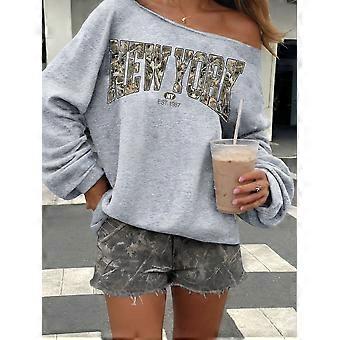 Women's Loose Off Shoulder Red Star Print Pattern Casual Long Sleeve Sweatshirt, Suitable For Autumn/Winter
