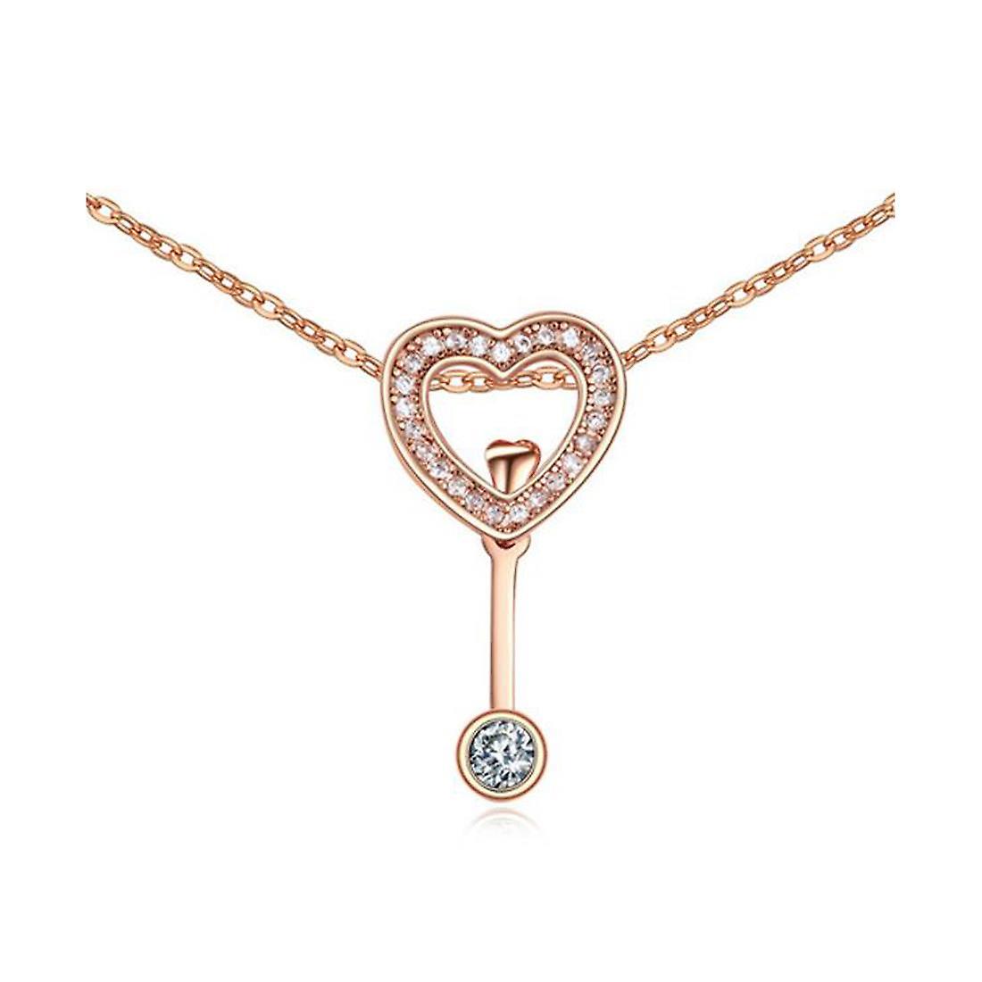 Womens Love Heart Arrow Necklace Pendant Rose Gold With Encrusted Crystal Stones