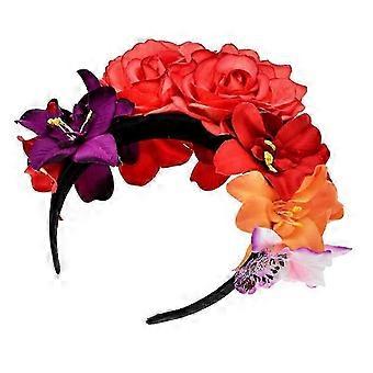 Womens Mexican Simulated Rose Flower Crown Headband Day of The Dead Halloween He