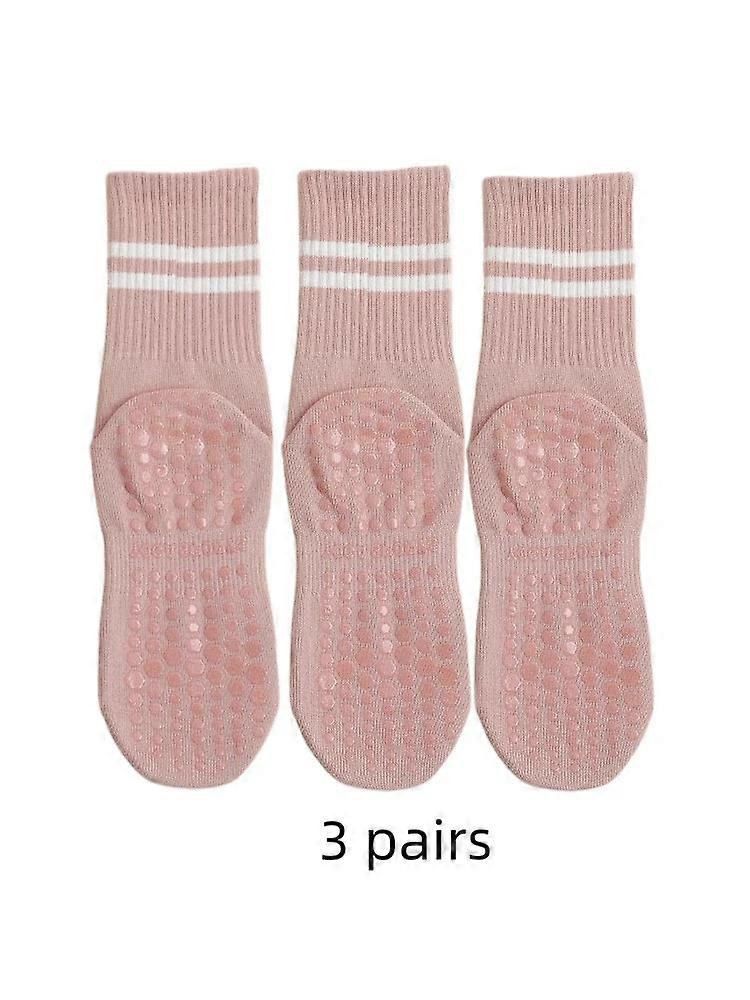 Women's Non-slip Cotton Yoga Socks, 3 Pairs, Medium Length For Fitness &