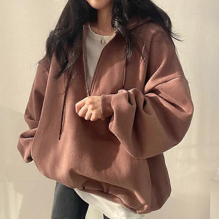 Women's Oversized Harajuku Half Zip Hoodie Sweatshirt Long Sleeve Casual Solid